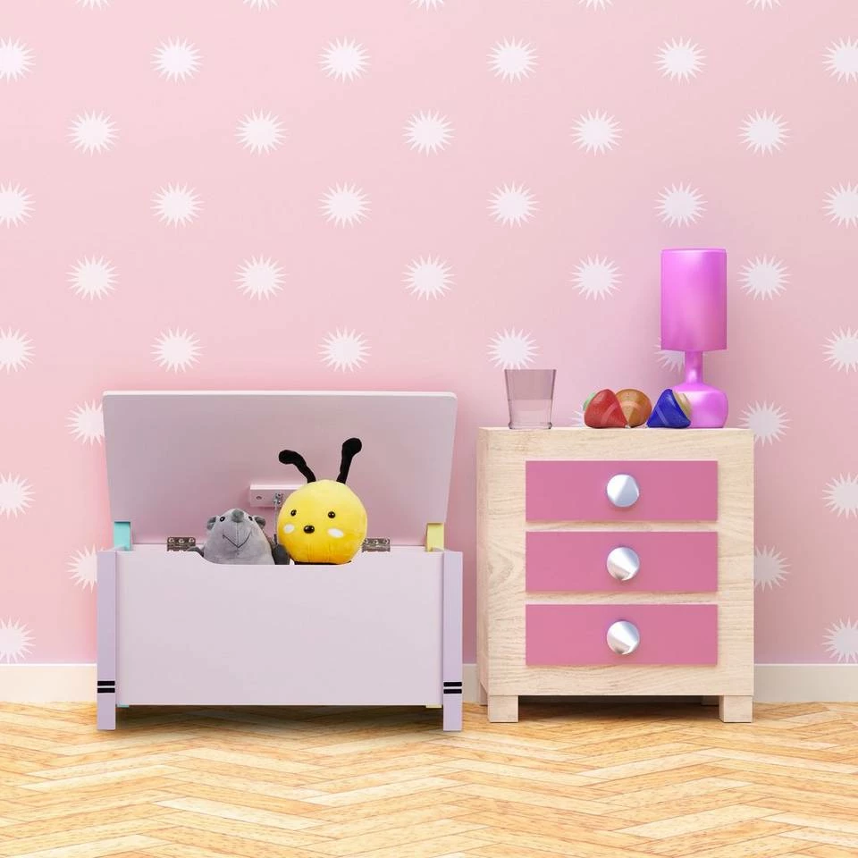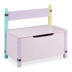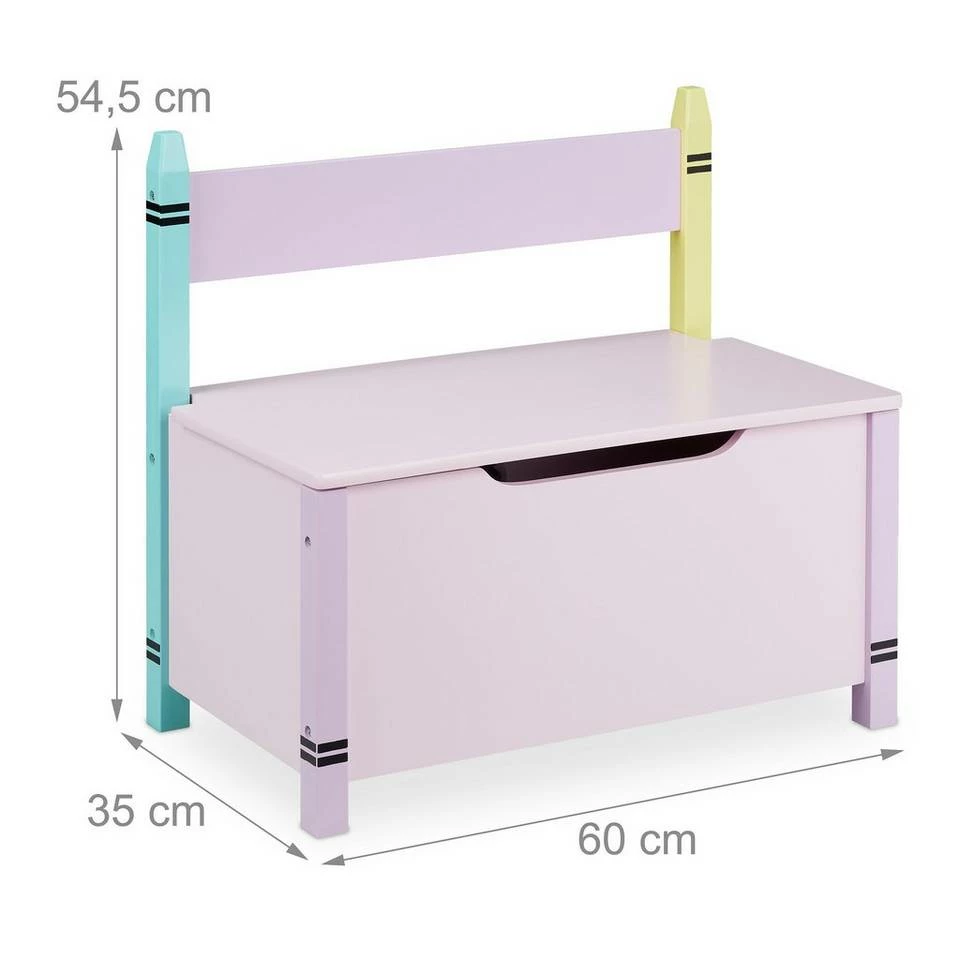Niedliche Kindertruhenbank mit Stauraum Diese niedliche Kinderbank ist eine tolle Sitzgelegenheit fürs Kinderzimmer. Nach ausgiebigem Toben können sich Deine Kleinen auf der Sitztruhe ausruhen. Die entstandene Unordnung ist dank der Spielzeugtruhe ebenso im Nu aufgeräumt. Kuscheltiere, Spielzeug, Bücher und mehr finden im geräumigen Fach der Truhenbank Platz und können mit dem Deckel blickdicht verstaut werden. Die robuste Kindersitzbank überzeugt dabei mit ihrem farbenfrohen Wachsmalstift Design, das Kinderaugen zum Strahlen bringt.