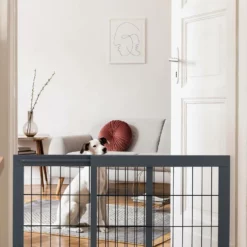 - Sicherheit: Graues Absperrgitter zum Schutz von Hunden oder Kindern in der Wohnung – Ca. 56 cm hoch