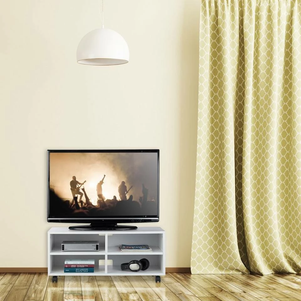 - Basics: Rollbarer Fernsehtisch aus PB der Maße HxBxT ca. 35 x 80 x 35 cm – Schlichtes Design in Weiß