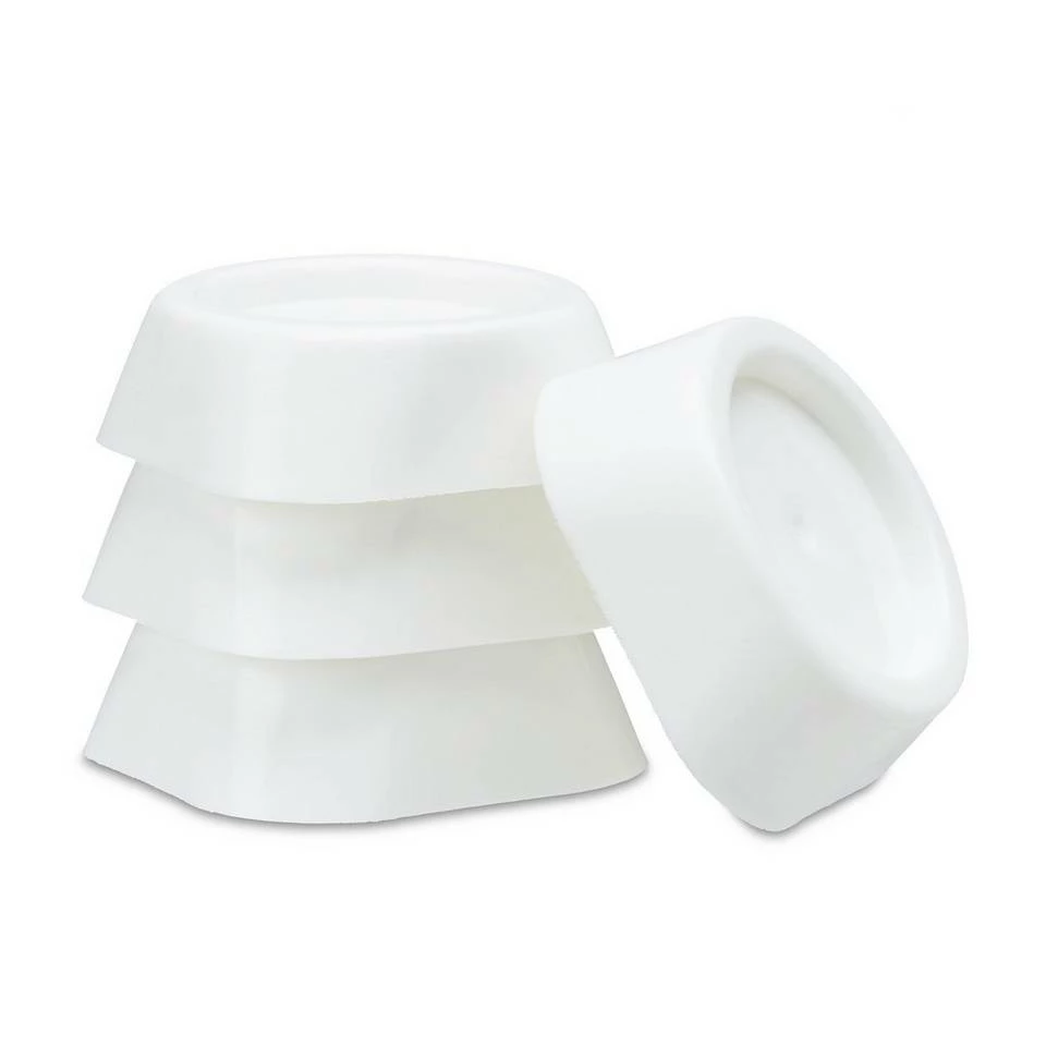 Vibrationsdämpfer absorbieren Schwingung & Lärm Waschmaschinen im Schleudergang können Ihre Wohnung ganz schön zum Beben bringen. Damit ist jetzt Schluss. Die praktischen Schwingungsdämpfer absorbieren die Vibration und senken den Geräuschpegel. So können Sie Waschmaschine und Trockner auch problemlos über Nacht laufen lassen. Die vier Helfer bestehen aus weichem, schwingungsabsorbierendem PVC. Stellen Sie Ihr Gerät mit allen vier Füßen auf jeweils einen der Schwingungsdämpfer. In der Mitte jedes Unterlegers ist eine Kuhle eingearbeitet, die ein Verrutschen der Waschmaschinenfüße verhindert.