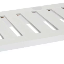 Weißes Wandregal mit Hakenleiste Wer wenig Platz im Flur oder Badezimmer hat, kennt das Problem: Wohin mit den Jacken sowie Mänteln beziehungsweise Handtüchern, Waschlappen und Duschzeug? Mit diesem smarten Wandboard schaffen Sie Abhilfe! Das weiße Regalbrett mit 6 silbernen Haken und einer schmalen Ablage sorgt für wertvollen Stauraum, ohne Stellplatz wegzunehmen. Gefertigt aus robustem Bambus ist es besonders für Feuchträume geeignet und überzeugt weiß lackiert im dekorativen Landhausstil.