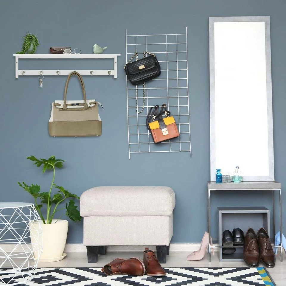 - Für Flur: Jacken, Mäntel und Schals an der Garderobenleiste aufhängen – Traglast je Haken: ca. 2,5 kg