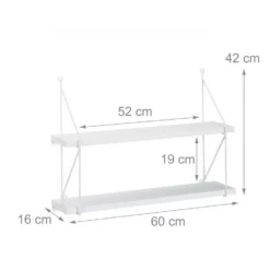 - 2er Set Wandregale: 2 kleine Hängeregale zur Wandmontage in Weiß – Mit 2 Ebenen und seitlichem Rahmen – Maße H x B x T: ca. 42 x 60 x 16 cm