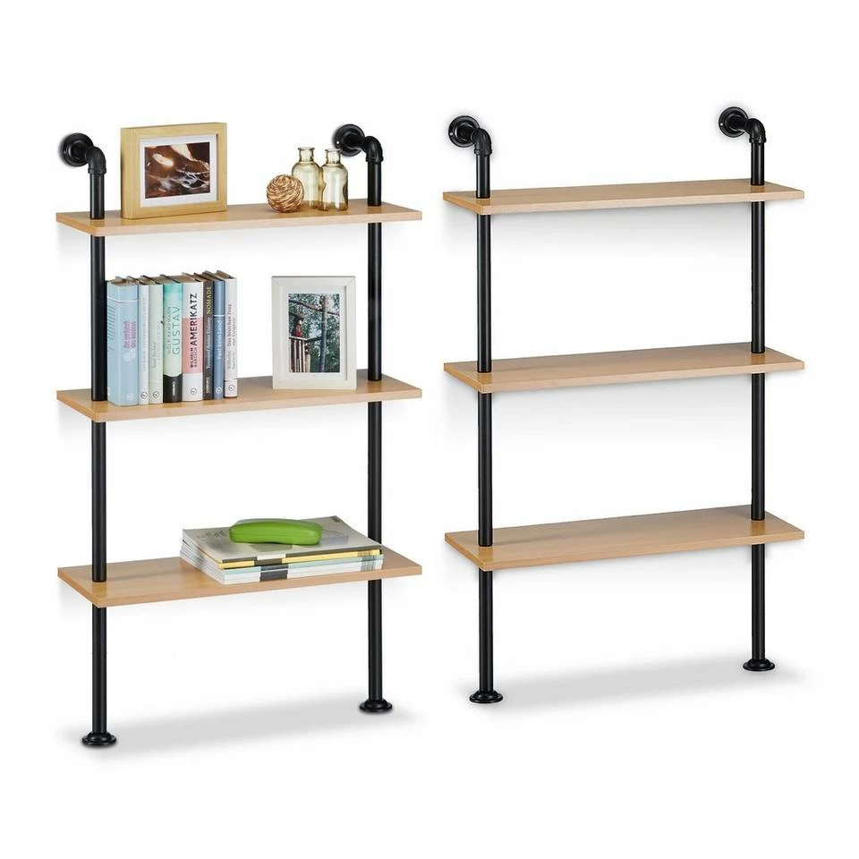- 2x Wandregal im Set: Die Wand Boards mit 3 Ebenen überzeugen durch einen rustikalen Look – Cooles Vintage-Design mit Eisenrohren, die auf jeden Fall Blicke auf sich ziehen