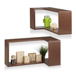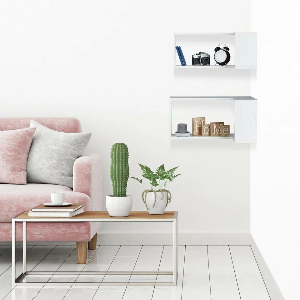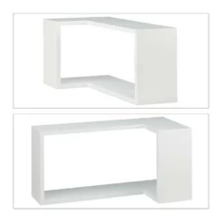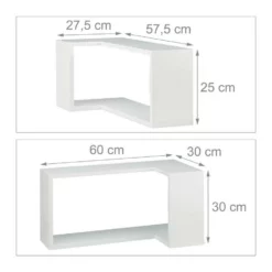 Freischwebende Eckregale im 2er Set Wenn Sie Ihre Einrichtung optisch aufwerten möchten, muss die Zimmerecke keine Ausnahme bilden. Diese Wandregale im 2er Set verleihen jeder Nische neuen Glanz, ob Sie nun Bücher, Vasen, Bilderrahmen oder sehenswerte Dekoartikel in Szene setzen wollen. Die Eckregale kommen nicht mit einer monotonen Optik daher, sondern überzeugen mit ihrem verspielten, unregelmäßigen Design. Sie können aus mehreren farbintensiven Varianten wählen. Die für die Wandmontage erforderlichen Schrauben und Dübel sind in der Lieferung bereits enthalten.