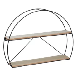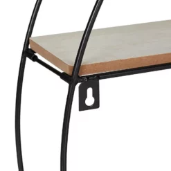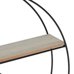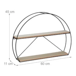 Halbrundes Hängeregal im Industrie Design Kahle Wände waren gestern! Mit diesem stylischen Dekoregal verschönern Sie die Wände in Ihrer Wohnung. Stellen Sie Bilder, kleine Pflanzen, Dekoartikel und mehr auf dem Schweberegal ab und verleihen Sie Ihrem Wohnbereich persönliches Flair. Auch in der Küche als Ablage für Gewürze und Teedosen macht das Hängeregal eine gute Figur. Das Zusammenspiel der Ablagen in Holzoptik und dem schwarzen Eisengestell macht das Wandregal im Industrial Design zum optischen Highlight.