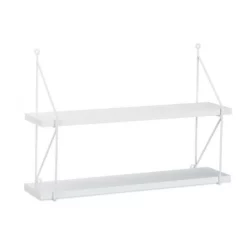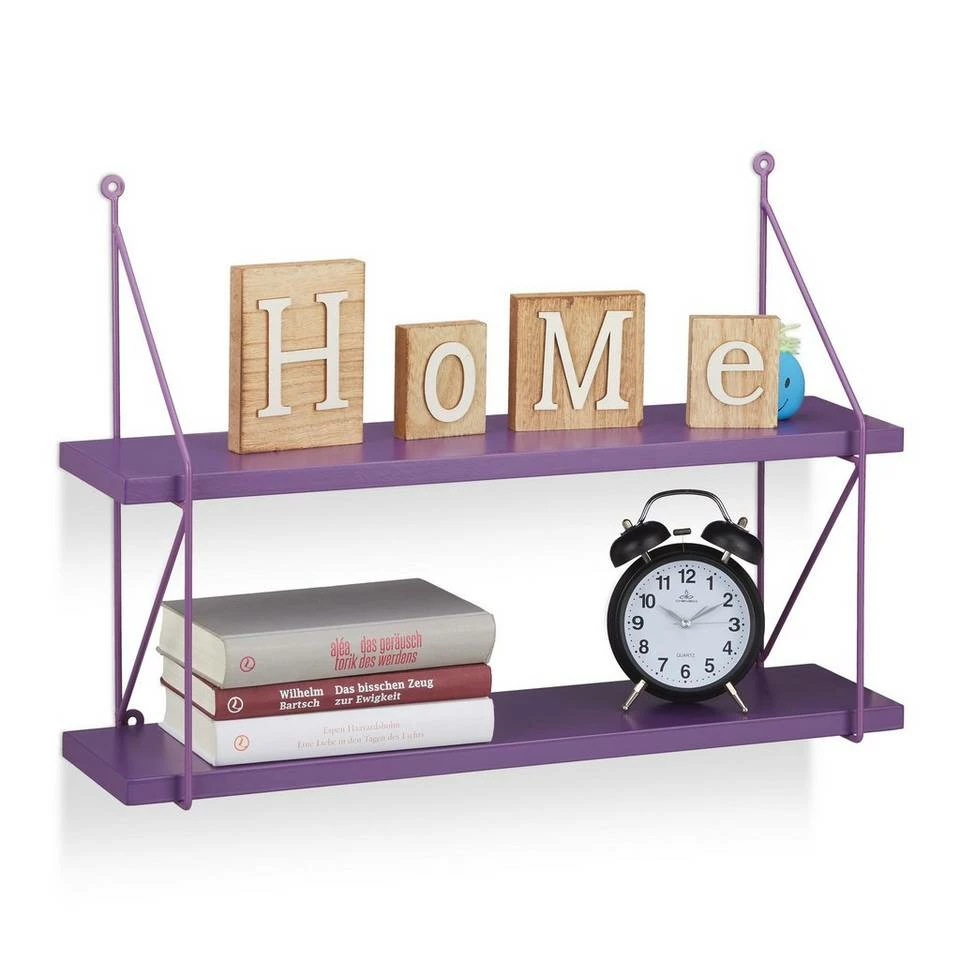 Kleines Hängeregal zur Wandmontage Das praktische Hängeregal mit zwei Ebenen bringt die Dinge des Alltags an die Wand, ob Bücher, DVDs oder Dekoartikel. Zwei Seitenwände aus einem filigranen Metallgestell tragen die zwei Regalbretter aus robustem MDF-Holz. Das Wandregal ist unifarben lackiert und in verschiedenen Farben erhältlich. Dank des reduzierten Designs passt die Wandablage in jedes Interieur. Dekorative Zimmerpflanzen oder schmückendes Dekor kommen auf dem offenen Regal besonders gut zur Geltung.