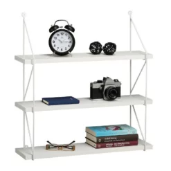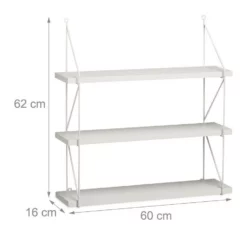 - Geräumige Ablage: Großes Hängeregal zur Wandmontage – Mit 3 Ebenen und seitlichem Rahmen in Weiß – Maße H x B x T: ca. 62 x 60 x 16 cm