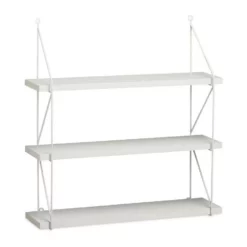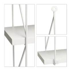 Großes Hängeregal für die Wand Das geräumige Hängeregal mit drei Ebenen schafft zusätzlichen Stauraum an Ihrer Wand. Die robusten Regalbretter aus matt lackiertem MDF werden von einem filigranen Metallgestell an den Seiten getragen. Das offene und einfache Design wirkt luftig und fügt sich nahtlos in jeden Einrichtungsstil. Das Wandregal mit unifarbener Lackierung ist in verschiedenen Farben erhältlich. Wählen Sie Ihre Lieblingsfarbe und setzen Sie farbige Akzente auf Ihrer Wohnzimmerwand. Die Wandbretter bieten überall im Haus eine praktische Ablagefläche, sei es für Geschirr in der Küche oder für Bücher im Kinderzimmer.