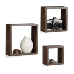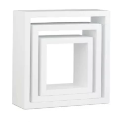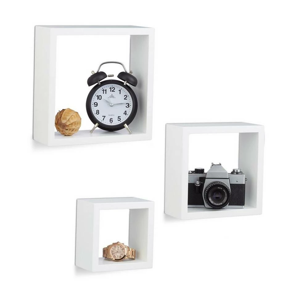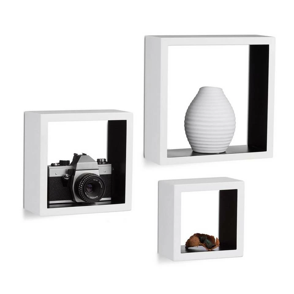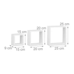 Cube Schweberegale für anregend gestaltete Wände Sie möchten Ihren humorlosen Wänden eine spielerische Note verleihen? Das 3er Set besteht aus quadratischen Hängeregalen in verschiedenen Größen, die Sie nach Lust und Laune anbringen können. Die Montage gestaltet sich dank der jeweils bereits eingearbeiteten Aufhängungen sehr einfach. Auch an die erforderlichen Schrauben und Dübel ist gedacht. Wir bieten mehrere Farbvariante zur Auswahl, sodass Sie die optimale Lösung für sich finden. Mit den Wandboards präsentieren Sie DVDs, Vasen, Kuscheltiere uvm. auf angenehme Weise und sparen darüber hinaus Platz.