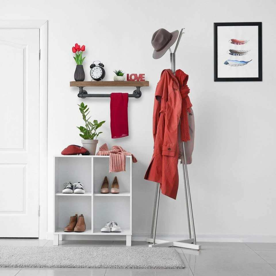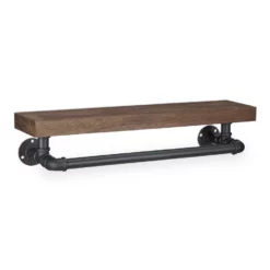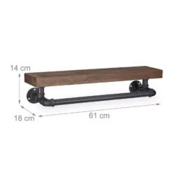 - Basics: Regalbrett aus Holz mit Rohren aus Eisen – Maße HxBxT: ca. 14x61x18 cm – Stange L: ca. 46 cm
