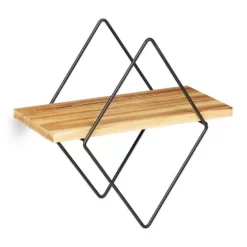 Kleines Hängeregal in dekorativer Diamantform Mit dem schwarzen Wandregal mit filigranem Metallrahmen hauchst Du leeren Wänden im Wohn- oder Schlafzimmer neues Leben ein. Kleine Pflanzen, Bilder oder Dekofiguren finden mit dem Hängeregal einen tollen Platz an der Wand und werden dekorativ in Szene gesetzt. Auch in Flur oder Küche, wo sich das Schweberegal etwa für Gewürze eignet, fügt sich das schlichte, geometrische Design perfekt ein. Dank beiliegendem Montagematerial ist das Regal im Nu an der Wand befestigt