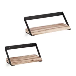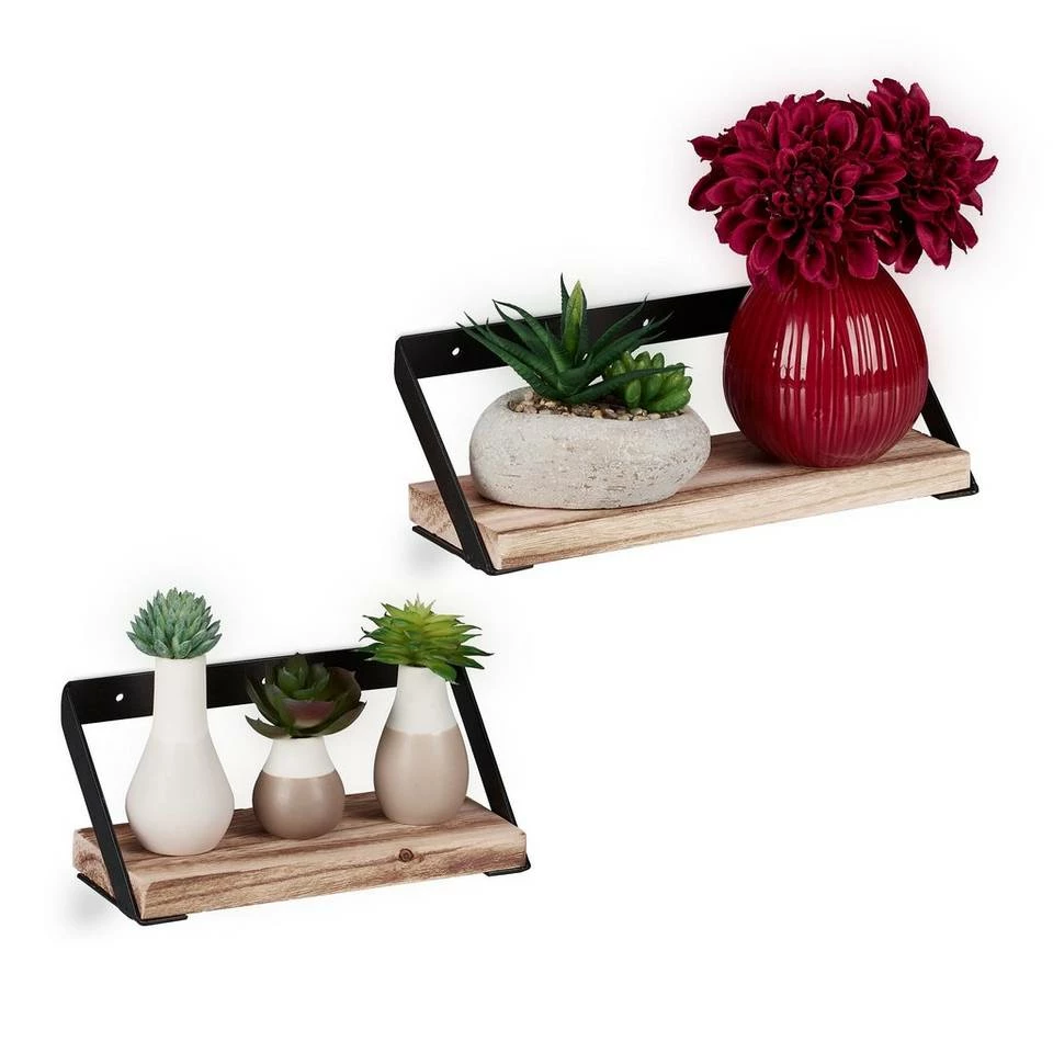 Hängeregal für Bilderrahmen, Vasen und mehr Sorgen Sie mit diesem Schweberegal 2er Set im Industrial Design für einen rustikalen Look in Ihrem Zuhause. Die Holzregale besitzen 2 verschiedene Größen und können nach belieben mit der unterschiedlichsten Dekoration bestückt werden, z.B. Bilderrahmen, Blumenvasen, Kerzen, Bücher, etc. Das Hängeregal besteht aus Paulownia-Holz und besitzt eine stabile Eisenhalterung für einen sicheren Halt. Beim Lieferumfang sind Schrauben und Dübel für eine sofortige Montage mit inbegriffen.