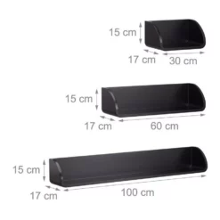 - Set: Wandregal Set mit 3 unterschiedlich großen Hängeregalen – Wandboards in elegantem Schwarz