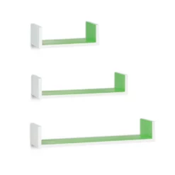 - Set: 3 Schweberegale in eckiger U-Form – Wandboards in Weiß-Grün verfügbar