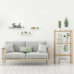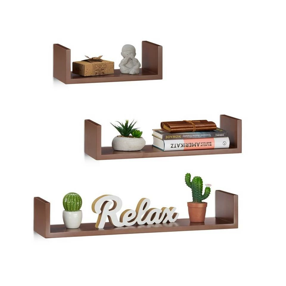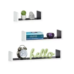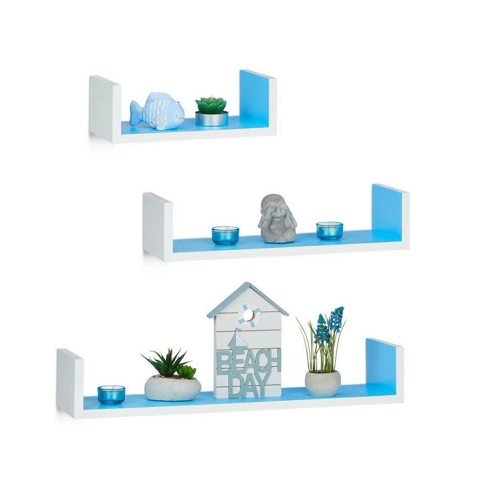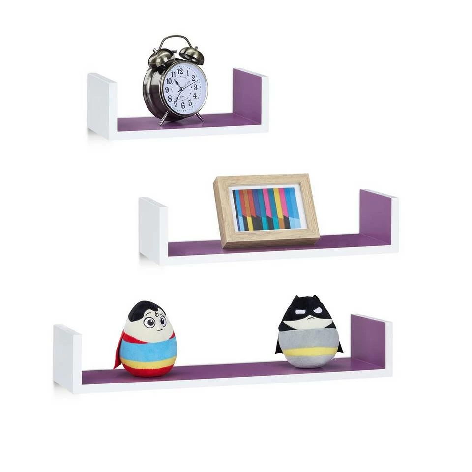 Modernes Wandregal im 3er Set Die 3 unterschiedlich großen Hängeregale des Sets hauchen kahlen Wänden neues Leben ein. Das U-förmige Design der Wandboards fügt sich optimal in jeden Raum Ihres Zuhauses ein und bietet Platz für Bücher, DVDs, Fotos oder trendy Deko. Die Hängeregale sind aus robustem, lackiertem MDF gefertigt und lassen sich durch jeweils 2 integrierte Halterungen an der Rückseite einfach an die Wand montieren.