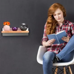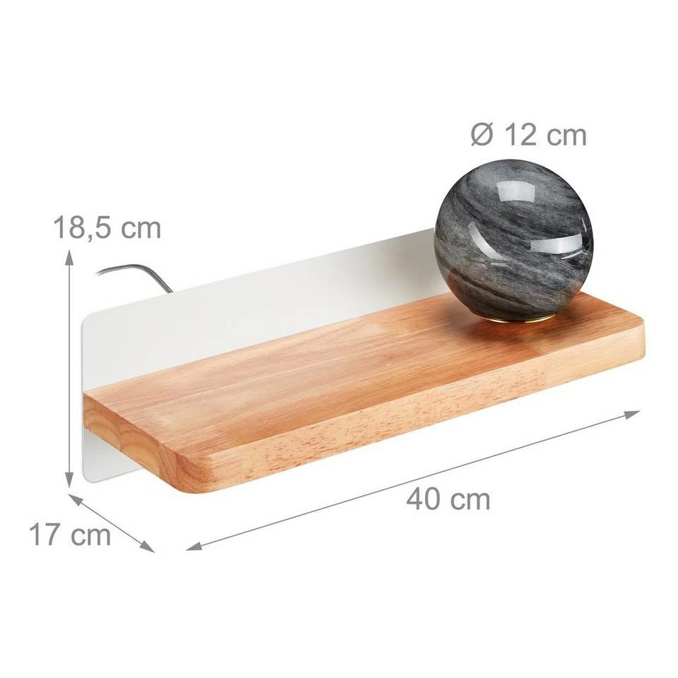 Wandlampe mit Holz Schweberegal Sie haben nicht viel Platz, doch benötigen eine Ablage und Beleuchtung? Mit diesem Wandboard ist Ihr Problem einfach gelöst! Das Schweberegal aus Holz wird an der Wand montiert & hält eine Kugellampe in grauer Marmoroptik. Der Glasschirm spendet angenehmes Licht, weshalb sich die Wandlampe ideal als Leselampe neben dem Bett oder Sofa eignet. Auch im Flur macht sich das Regal wunderbar als Ablage für Schlüssel & mehr. Das Dekoregal kann dank des langen Kabels frei an der Wand platziert werden.