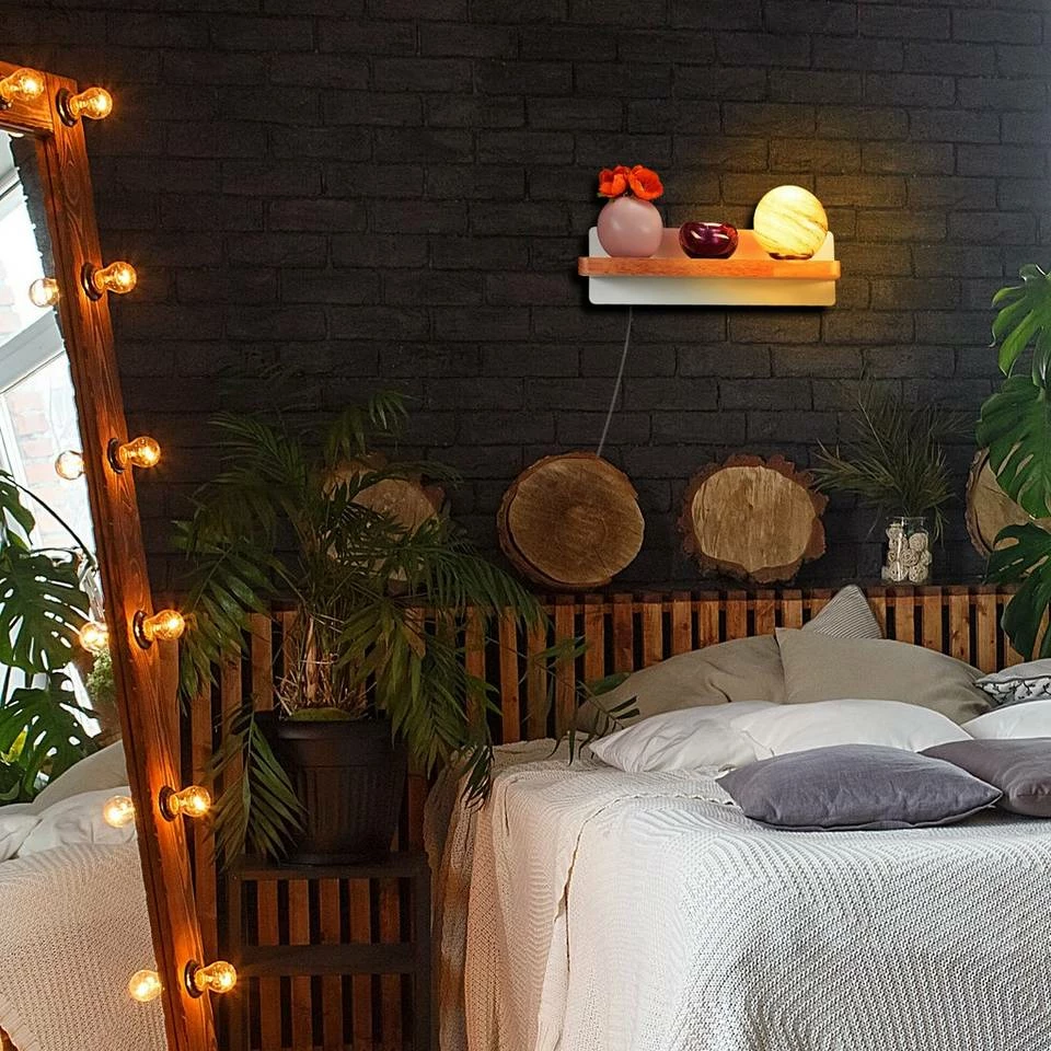 - 2 in 1: Dekorative Kombination aus Schweberegal und Wandlampe – H x B x T: ca. 18,5 x 40 x 17 cm