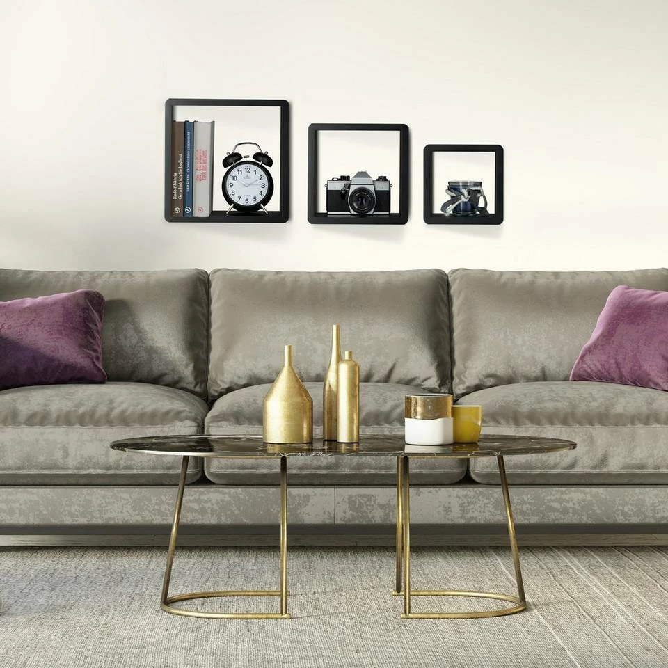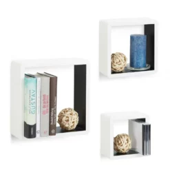 - Im Set: 3 moderne Wandregale für CDs, Büchern und mehr – Quadratisches Schweberegal mit abgerundeten Ecken – Wandcubes mit geschlossenem Rahmen in 3 Größen