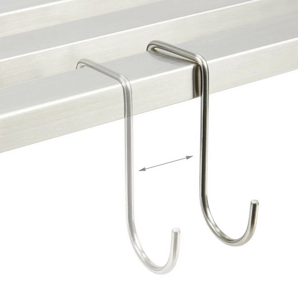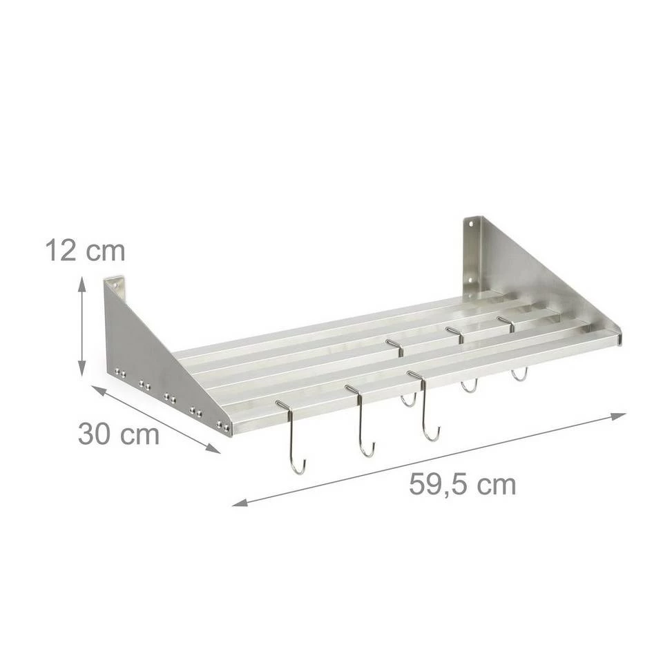 - Details: Maße Edelstahlregal H x B x T: ca. 12 x 59,5 x 30 cm – Maße je Haken H x T: ca. 7,5 x 3 cm