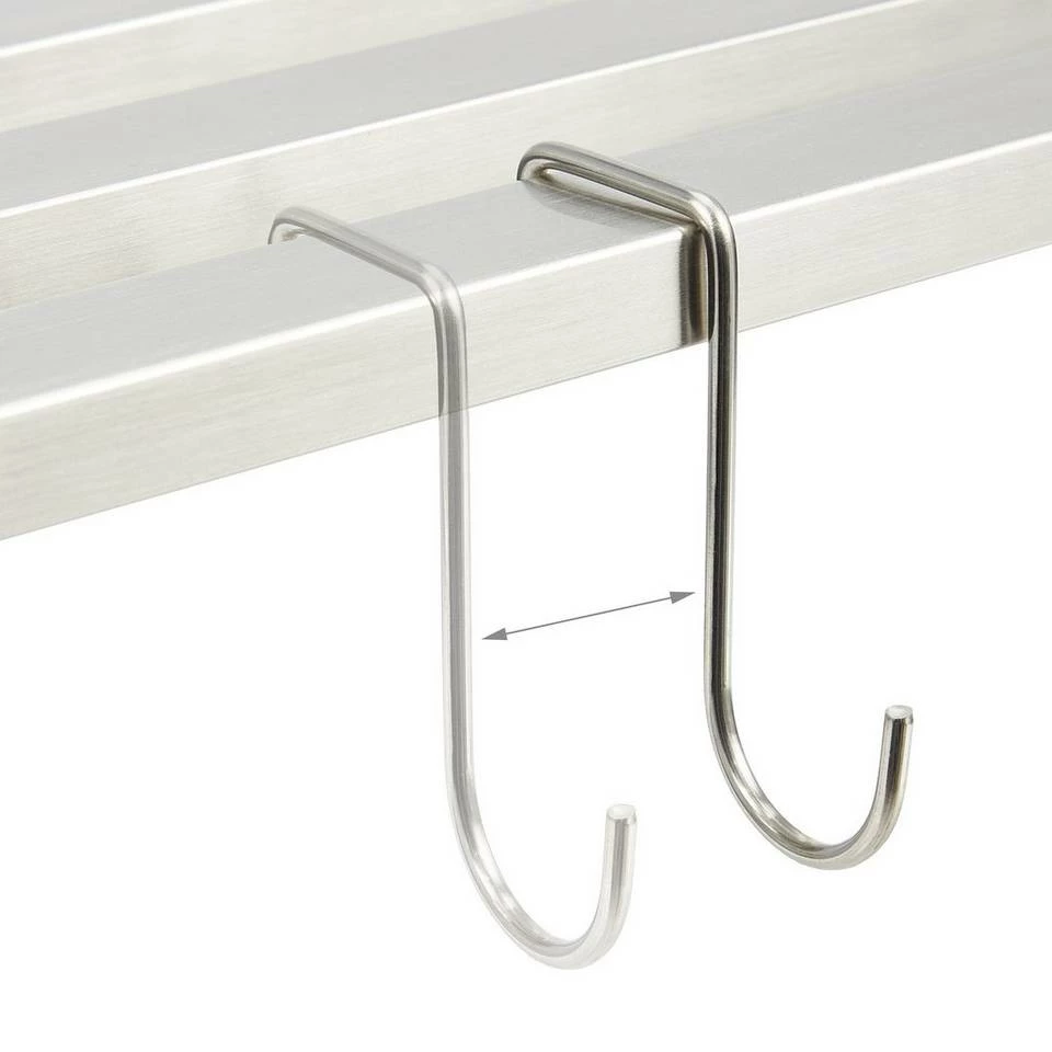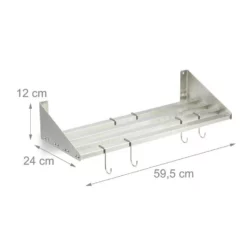 - Details: Maße Edelstahlregal H x B x T: ca. 12 x 59,5 x 24 cm – Maße je Haken H x T: ca. 7,5 x 3 cm