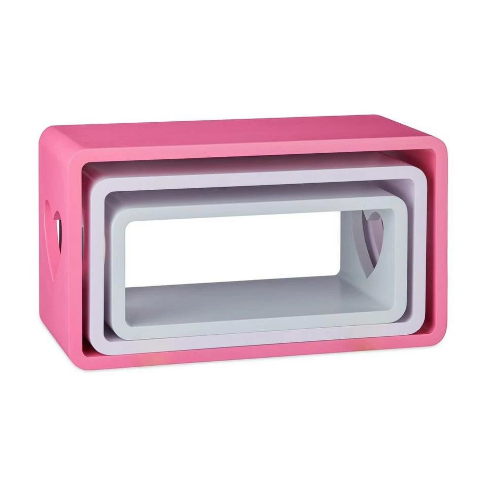 Freischwebende Dekoregale mit Herzen Wenn Sie keine Lust auf die Trostlosigkeit leerer Wände haben, sorgen diese 3 Wandregale für Abhilfe. Die Hängeregale kommen in 3 verschiedenen Größen und Farben zu Ihnen. Was sie jedoch alle eint: Sie haben Herz, und das jeweils sogar im Doppelpack! Die herzförmigen Öffnungen verleihen den Regalen ihren romantischen Charme. Ob Fotos, kleine Geschenke oder einzigartige Erinnerungsstücke: In den Ablagen findet alles Platz, was Sie an Ihre Lieben erinnert. Übrigens: Im Falle eines Umzuges können Sie die Wandablagen platzsparend ineinander stapeln – praktisch!