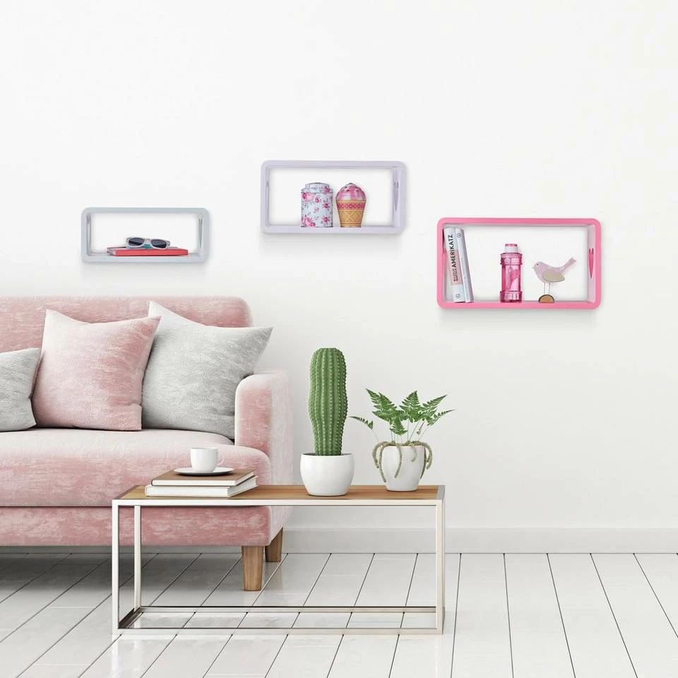 - Im Set: Die 3 freischwebenden Hängeregale spielen gut zusammen – 3 verschiedene Größen und Farben