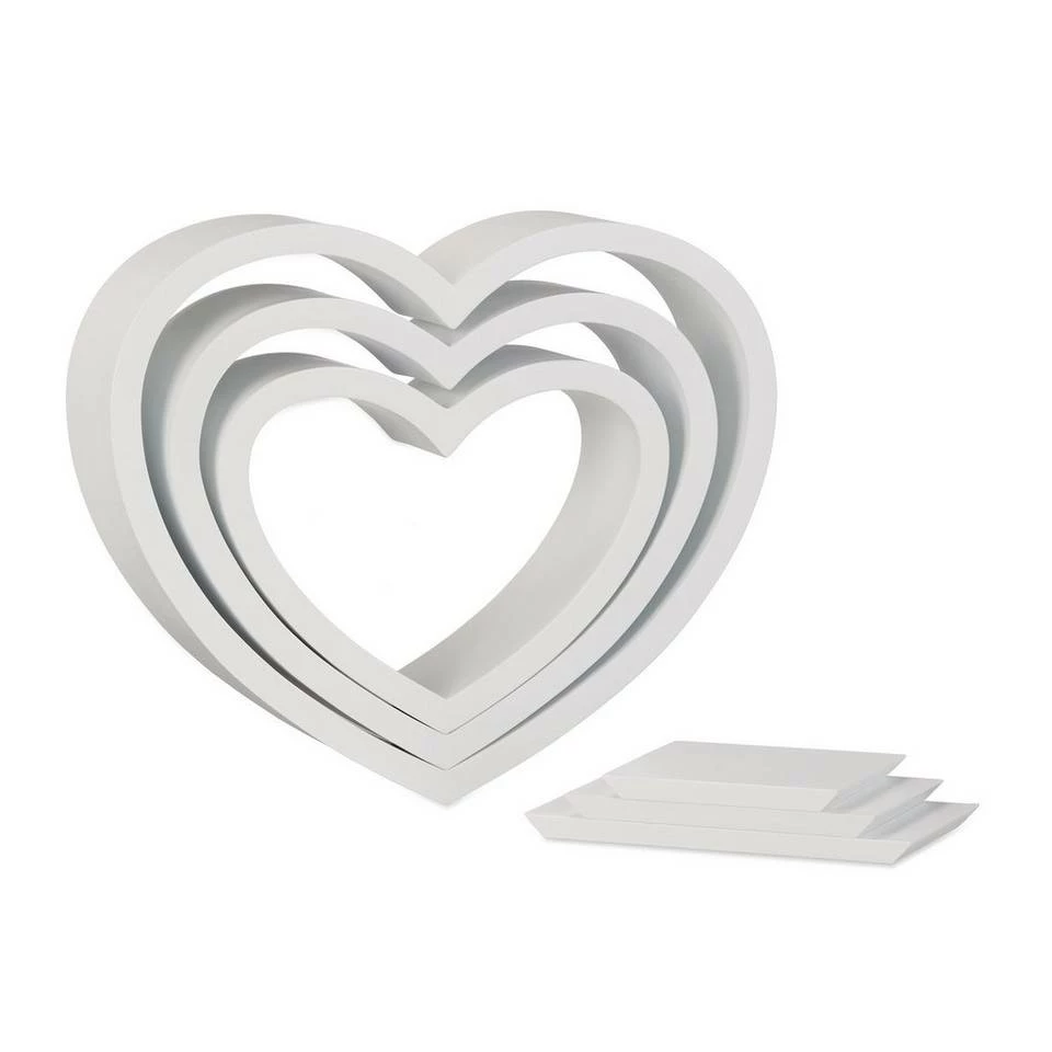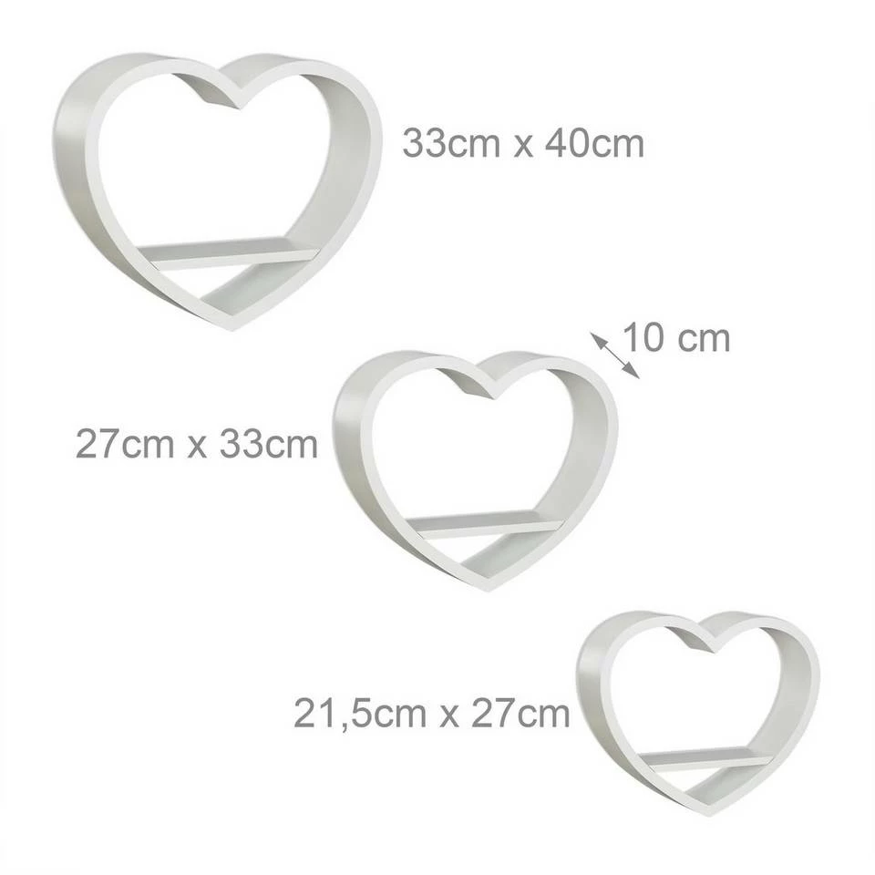 - Mit Herz: Romantische Wandregale in Herzform – Dekorative Schweberegale im 3er Set – Herzförmige Regale mit Ablagefläche in 3 Größen