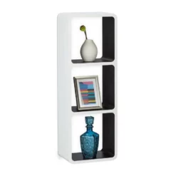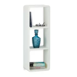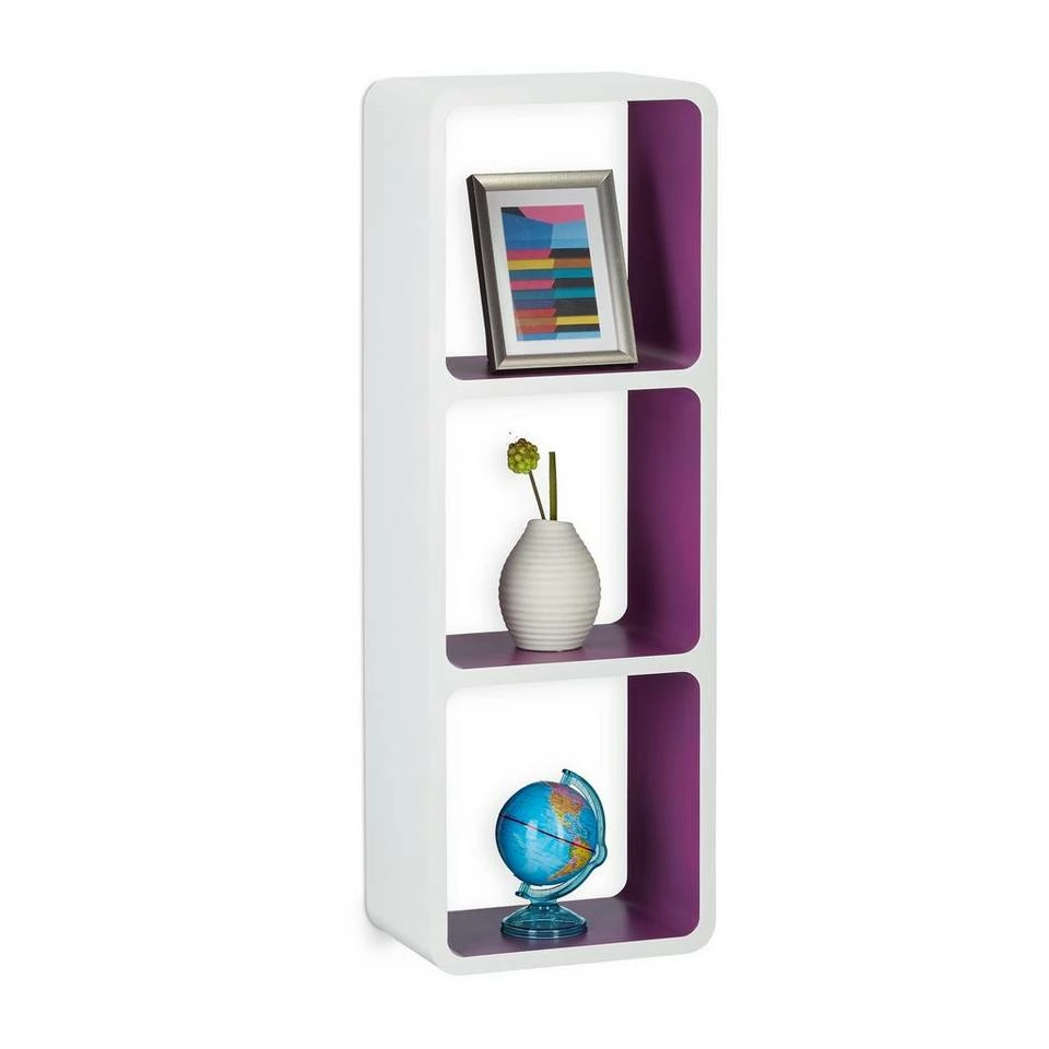 Dekoratives Wandregal mit 3 Fächern Egal ob Sie eine leere Wand verschönern wollen oder mehr Stauraum benötigen – Mit dem variablen Wandregal stehen Ihnen alle Möglichkeiten offen. Hängen Sie das freischwebende Wandregal mit unsichtbarer Aufhängung vertikal oder senkrecht auf. Auch als Standregal bietet sich das massive Regalgestell an. Die abgerundeten Ecken und Cube-förmigen Fächer schaffen ein modernes Design, welches durch die Farbauswahl besonders extra in Szene gerückt wird. Das sonst schlichte Schweberegal bietet Ihren Büchern, CDs und Bilderrahmen ausreichend Platz.