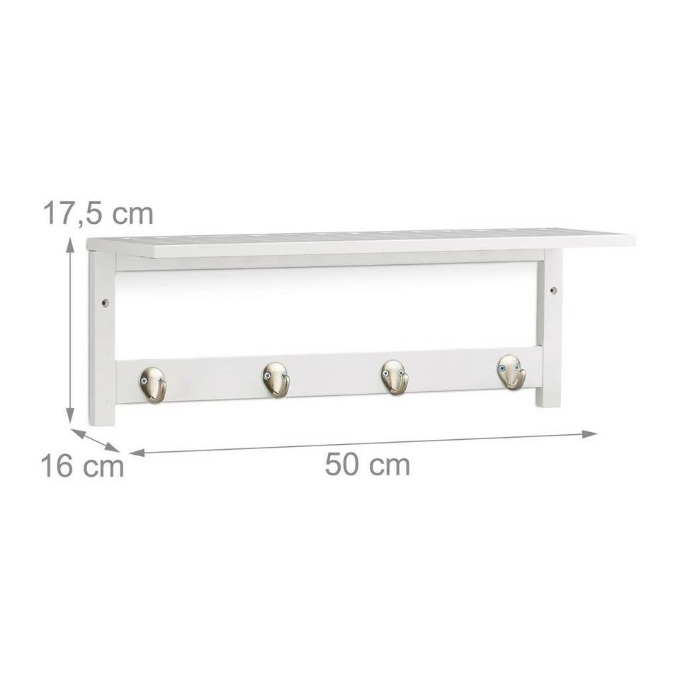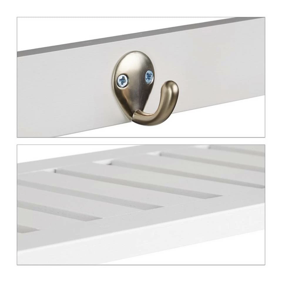 Wandregal mit Hakenleiste Dieses kleine Regal aus Bambus ist ein wahrer Vielkönner. Das Schweberegal ist ein zuverlässiger Komplize in Bad, Küche oder Keller, wenn Sie zusätzlichen Stauraum für Kosmetika, Küchenutensilien, Dekoartikel uvm. benötigen. Das Hängeregal besteht aus Bambus, einem sehr feuchtigkeitsbeständigem und robustem Material. Neben der praktischen Ablagefläche ist auch die Hakenleiste mit den 4 Haken vielfältig einsetzbar. Ob Sie nun einen Handtuchhalter oder eine Wandgarderobe für den Flur suchen: Die Wandmontage vereinigt beide Talente in sich. Das erforderliche Montagematerial für den schnellen Aufbau ist bereits Teil des Lieferumfangs.