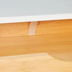 - Optik: Wandboard in skandinavischem Design aus weißem MDF und natürlichem Bambus – Schlichte Eleganz