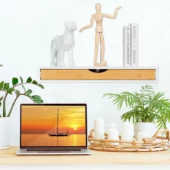 - Stauraum: Wandbrett mit integrierter Schublade – Platz für Kleinigkeiten wie Büroutensilien, Schlüssel uvm.