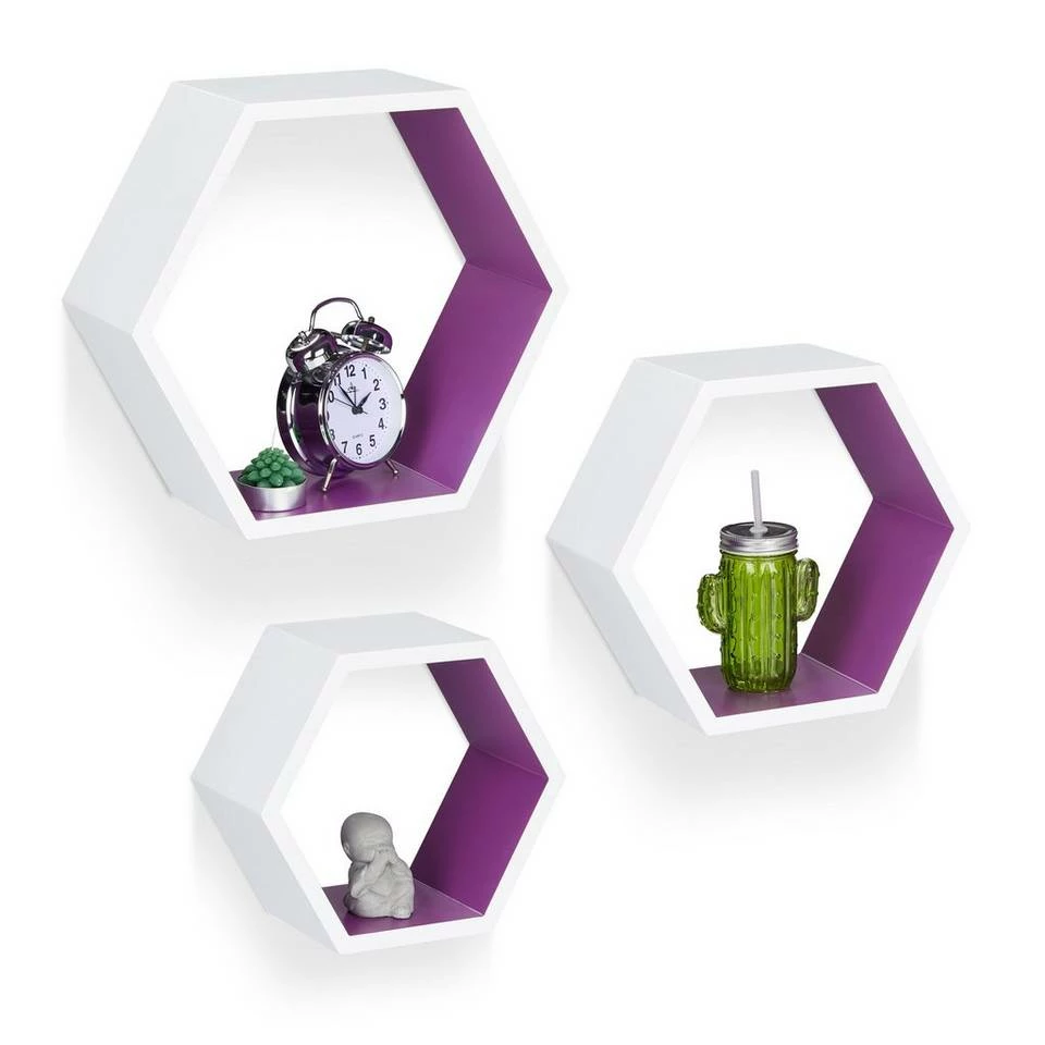 Wandboards mit unsichtbarer Befestigung aufhängen Fühlen Sie sich daheim erst dann so richtig wohl und angekommen, wenn Ihre Wände ihr dekoratives Potential voll entfalten? Um Ihrem Zuhause neues Leben einzuhauchen, bieten sich die 3 sechseckigen Wandregale hervorragend an. Hängen Sie die wabenförmigen Schweberegale einfach so auf, wie es Ihrem Geschmack entspricht! Nicht nur die Form zeichnet die Dekoregale aus. Auch ihre angenehmen, ausdrucksstarken Farbvarianten sorgen für ein fröhliches Ambiente, sei es im Flur, Kinder- oder Wohnzimmer.