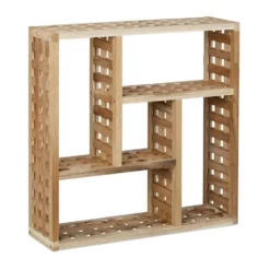Wandregal Bad – Im natürlichen Walnuss-Look Diese Wandregal aus Walnuss-Holz ist ein wahrer Hingucker. Besonders das ausgefallene Design der Fächer sticht hervor und fügt sich wunderbar in das Ambiente Ihres Badezimmers ein. Das robuste und widerstandsfähige Regal kann aber auch im Flur, Büro oder sogar in der Küche eingesetzt werden. Die 5 Fächer bietet ausreichend Platz für Bad-Accessoires, Bücher oder andere Kleinigkeiten im Haushalt. Über zwei Hängevorrichtung wird das Regal aus Walnuss ohne Probleme an der Wand angebracht.