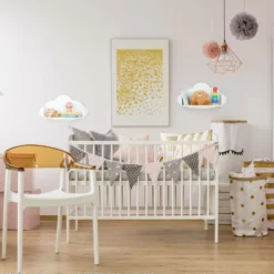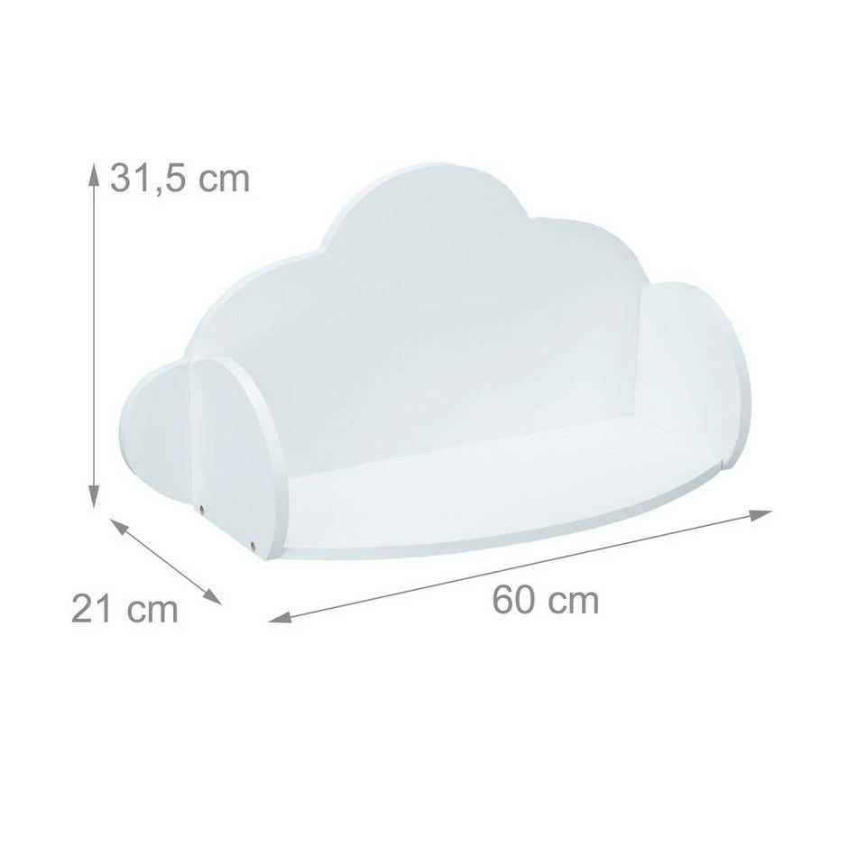 Weißes Wolkenregal für die Wand Das weiße Hängeregal ist ein niedliches Deko-Element im Kinderzimmer oder Babyzimmer und kommt insbesondere an farbigen Wänden gut zur Geltung. Dort hebt es sich mit seiner Wolkenform hübsch ab und verleiht der Wand einen ganz besonderen Charme. Auf der Ablage des Wandboards finden unter anderem Bücher oder kleineres Spielzeug einen Platz. Mithilfe von 2 Aufhängungen auf der Rückseite wird das Dekoregal an der Wand befestigt und ist im Zimmer von Jungs und Mädchen gleichermaßen ein Hingucker.