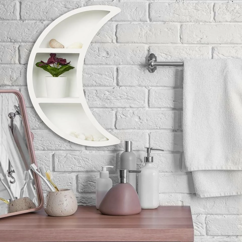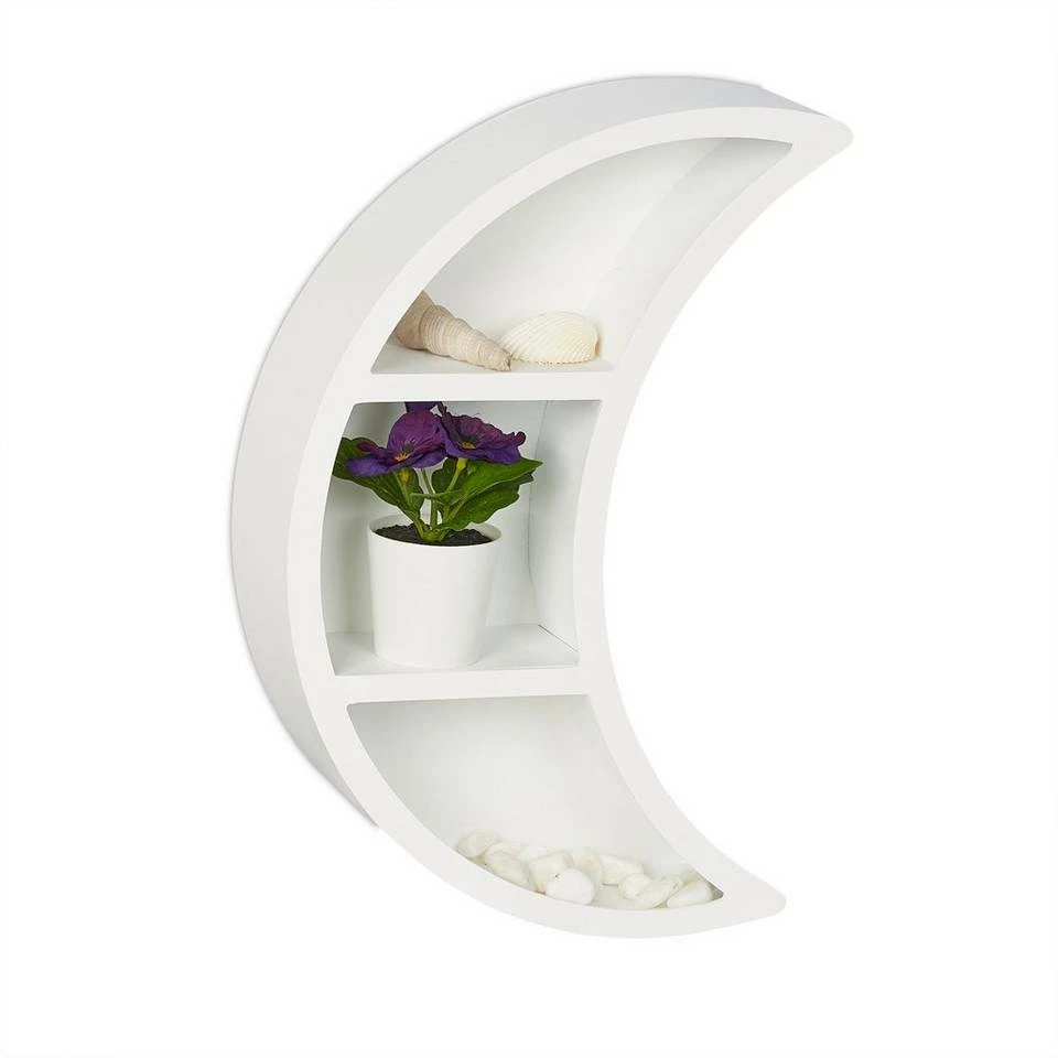 - Design: Weißes Dekowandregal in Form eines Halbmondes – Für träumerisches Flair im Wohnbereich
