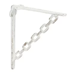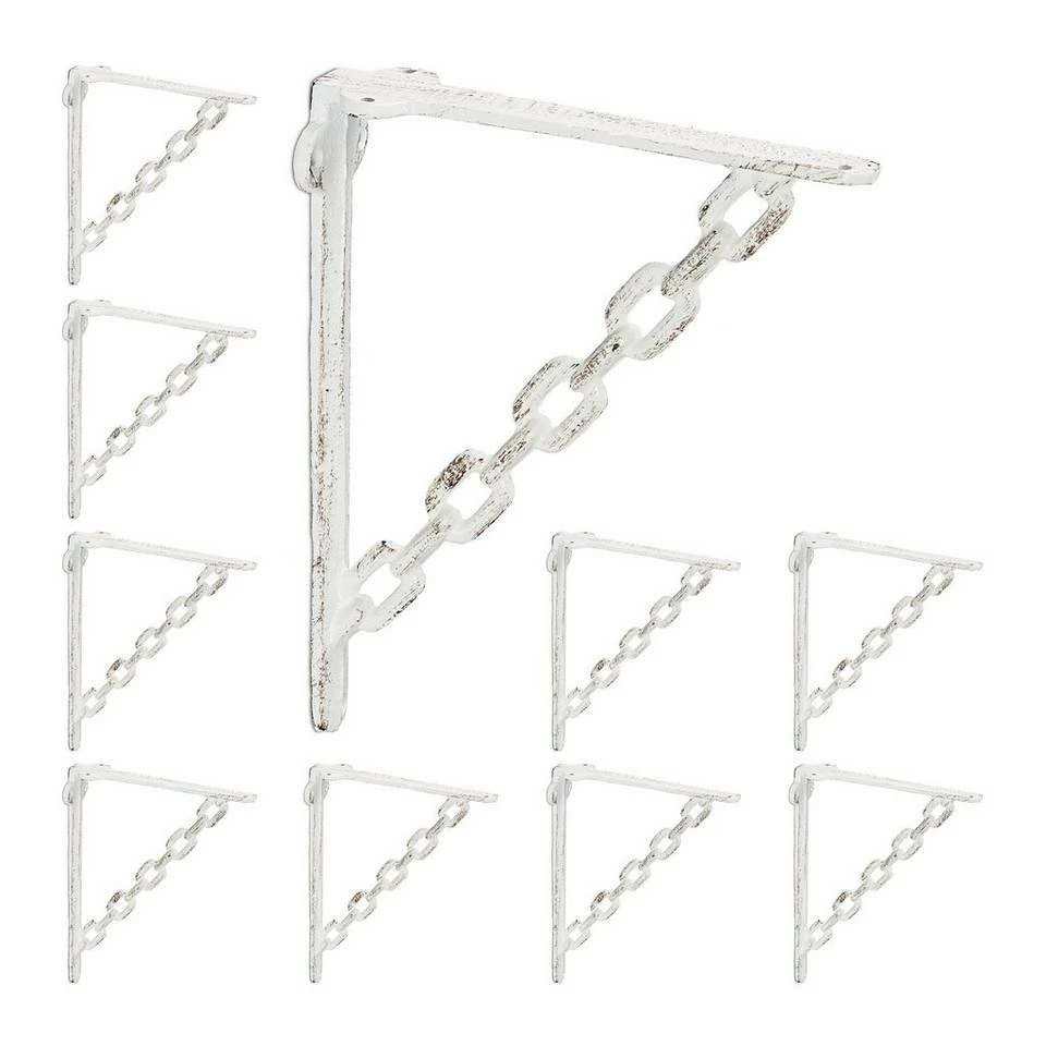 Rustikale Regalträger im nostalgischen Look Schlichten Regalbrettern verleihen Sie mit diesen ausgefallenen Wandwinkeln den letzten Schliff und machen sie zu dekorativen Hängeregalen für Bücher, Dekoartikel und mehr. Die Diagonal-Streben im Ketten-Design verleihen den gusseisernen Regalstützen einen sehenswerten Industrial Look, der durch die Shabby Oberfläche perfekt ergänzt wird. Jede Seite der Regalhalterungen verfügt über 3 Bohrlöcher, sodass Sie die Winkelkonsolen ganz einfach an der Wand und dem Regalboden montieren können.