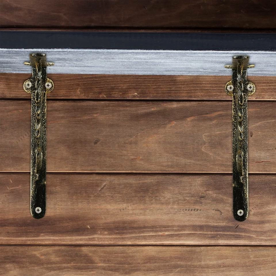 Antike Winkel Wandhalterungen für Regale Um einfachen Wandboards das gewisse Etwas zu verleihen, sind diese Regalträger genau das richtige. Mit ihrem antiken Design hauchen die Winkelträger jedem Regalboden nostalgischen Charme ein und machen ihn zu einem Hingucker an Ihrer Wand. Für einen besonderen Eyecatcher sorgen dabei die verzierten Diagonalstreben, die in Form einer Feder gestaltet sind. Der rustikale Shabby Chic Look der gusseisernen Regalhalterungen fügt sich vor allem in Vintage Einrichtungen im Landhausstil perfekt ein.