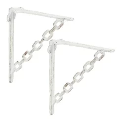 Rustikale Regalträger im nostalgischen Look Schlichten Regalbrettern verleihen Sie mit diesen ausgefallenen Wandwinkeln den letzten Schliff und machen sie zu dekorativen Hängeregalen für Bücher, Dekoartikel und mehr. Die Diagonal-Streben im Ketten-Design verleihen den gusseisernen Regalstützen einen sehenswerten Industrial Look, der durch die Shabby Oberfläche perfekt ergänzt wird. Jede Seite der Regalhalterungen verfügt über 3 Bohrlöcher, sodass Sie die Winkelkonsolen ganz einfach an der Wand und dem Regalboden montieren können.
