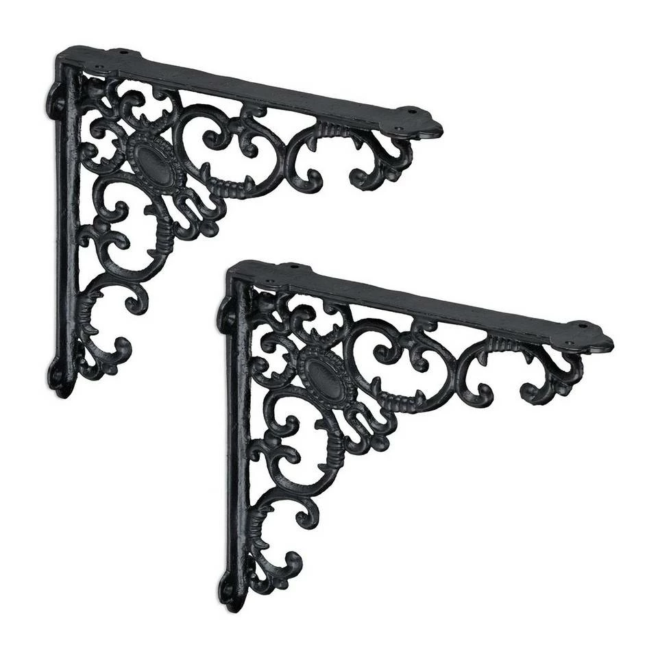 Winkelkonsole für unterschiedliche Regalbretter Die Regal Winkelträger im 2er Set sind praktisch und dekorativ zugleich. Mit einem beliebigen Regalbrett verwandeln Sie die Regalträger in ein einzigartiges und individuelles Wandregal. Gleichzeitig bringen Sie mit der Regalkonsole ganz besonderen Charme in Ihre vier Wände. Setzten Sie antike Akzente im Vintage-Look und nutzen Sie die barocken Ornamente als dekoratives Highlight. Ebenso lassen sich mit den Regalhalterungen auf dem Balkon oder an der Gartenhütte rustikale Akzente setzen.