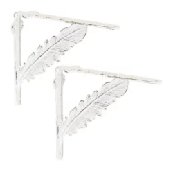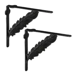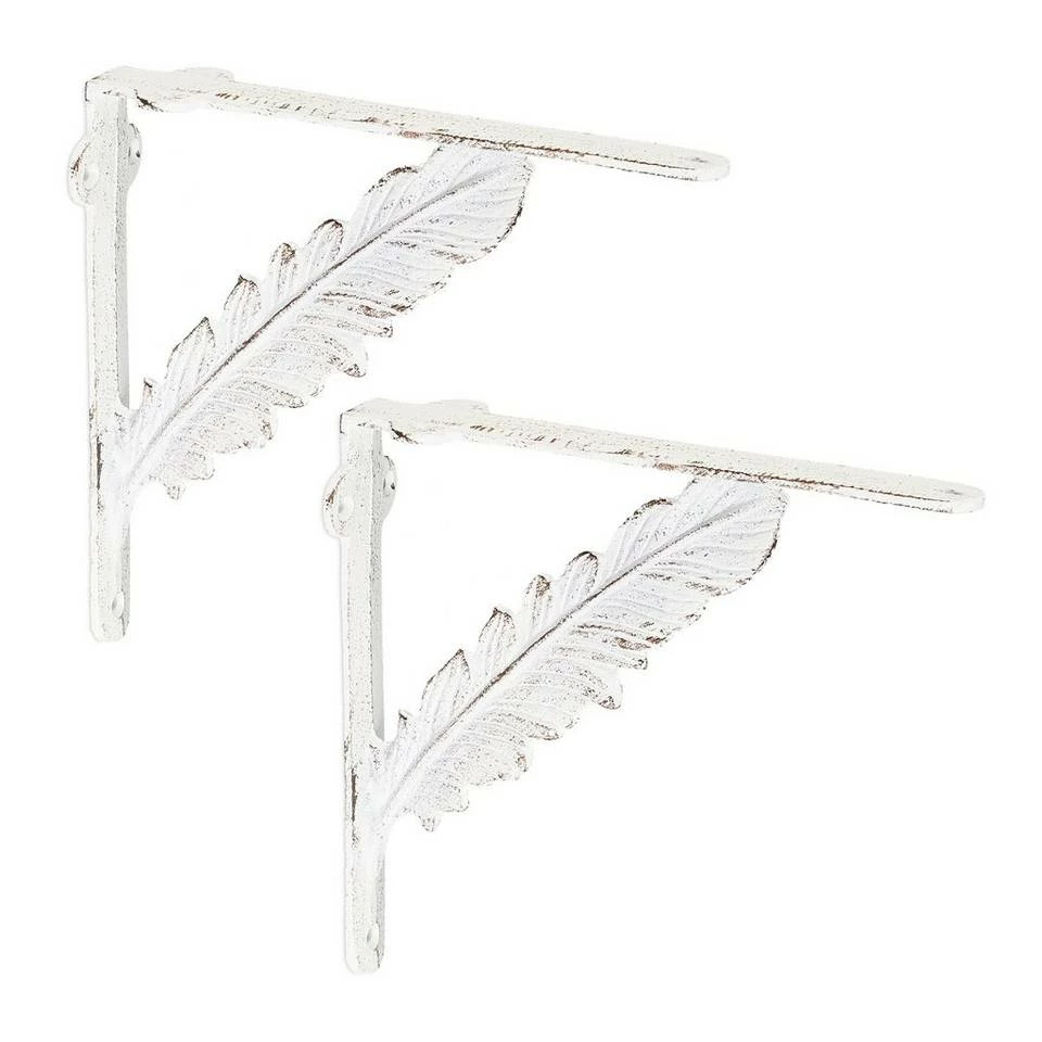 Antike Winkel Wandhalterungen für Regale Um einfachen Wandboards das gewisse Etwas zu verleihen, sind diese Regalträger genau das richtige. Mit ihrem antiken Design hauchen die Winkelträger jedem Regalboden nostalgischen Charme ein und machen ihn zu einem Hingucker an Ihrer Wand. Für einen besonderen Eyecatcher sorgen dabei die verzierten Diagonalstreben, die in Form einer Feder gestaltet sind. Der rustikale Shabby Chic Look der gusseisernen Regalhalterungen fügt sich vor allem in Vintage Einrichtungen im Landhausstil perfekt ein.