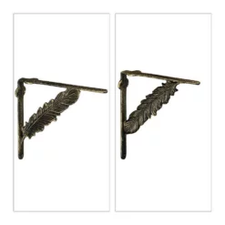 - Feder-Motiv: Bronzene Regalträger mit Diagonal-Strebe im Feder Design ziehen die Blicke auf sich