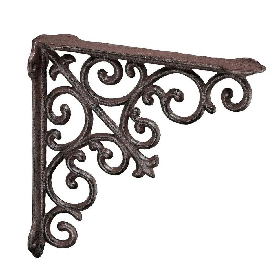 Regal Winkelträger im angesagten Vintage-Stil Die antiken Regalträger im 4er Set sind nicht nur eine Auflage für Regalbretter, sondern zugleich ein dekoratives Highlight. Mit ihnen wird jeder Regalboden zum ausgefallenen Blickfang. Geschwungene Ornamente im Barock-Stil verbinden beide Streben der Stegkonsolen und versprühen nostalgischen Charme. Gefertigt aus massivem Gusseisen können die rustikalen Winkel Wandhalterungen auch im geschützten Außenbereich zum Einsatz kommen und Balkon oder Gartenhütte schmücken.