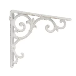 4er Set Regal Wandhalterung mit Ornamenten Mit den Wandwinkeln zaubern Sie aus langweiligen Regalbrettern im Handumdrehen dekorative Wandregale. Die Verzierungen im barocken Stil lassen die Regalstützen zum echten Blickfang werden und versprühen nostalgischen Charme. Komplett aus Gusseisen gefertigt, sind die Wandregalhalterungen besonders stabil und halten Regalböden sicher. Mithilfe vorbereiteter Bohrlöcher können die Regalhalterungen schnell montiert werden.