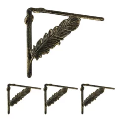 Antike Winkel Wandhalterungen für Regale Um einfachen Wandboards das gewisse Etwas zu verleihen, sind diese Regalträger genau das richtige. Mit ihrem antiken Design hauchen die Winkelträger jedem Regalboden nostalgischen Charme ein und machen ihn zu einem Hingucker an Ihrer Wand. Für einen besonderen Eyecatcher sorgen dabei die verzierten Diagonalstreben, die in Form einer Feder gestaltet sind. Der rustikale Shabby Chic Look der gusseisernen Regalhalterungen fügt sich vor allem in Vintage Einrichtungen im Landhausstil perfekt ein.