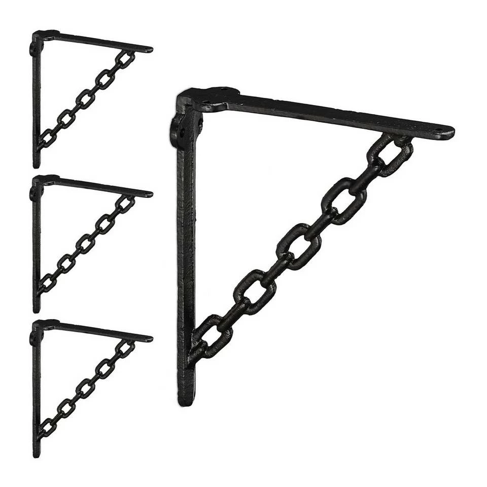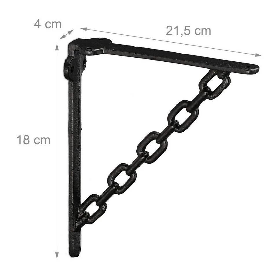 Rustikale Regalträger im nostalgischen Look Schlichten Regalbrettern verleihen Sie mit diesen ausgefallenen Wandwinkeln den letzten Schliff und machen sie zu dekorativen Hängeregalen für Bücher, Dekoartikel und mehr. Die Diagonal-Streben im Ketten-Design verleihen den gusseisernen Regalstützen einen sehenswerten Industrial Look, der durch die Shabby Oberfläche perfekt ergänzt wird. Jede Seite der Regalhalterungen verfügt über 3 Bohrlöcher, sodass Sie die Winkelkonsolen ganz einfach an der Wand und dem Regalboden montieren können.