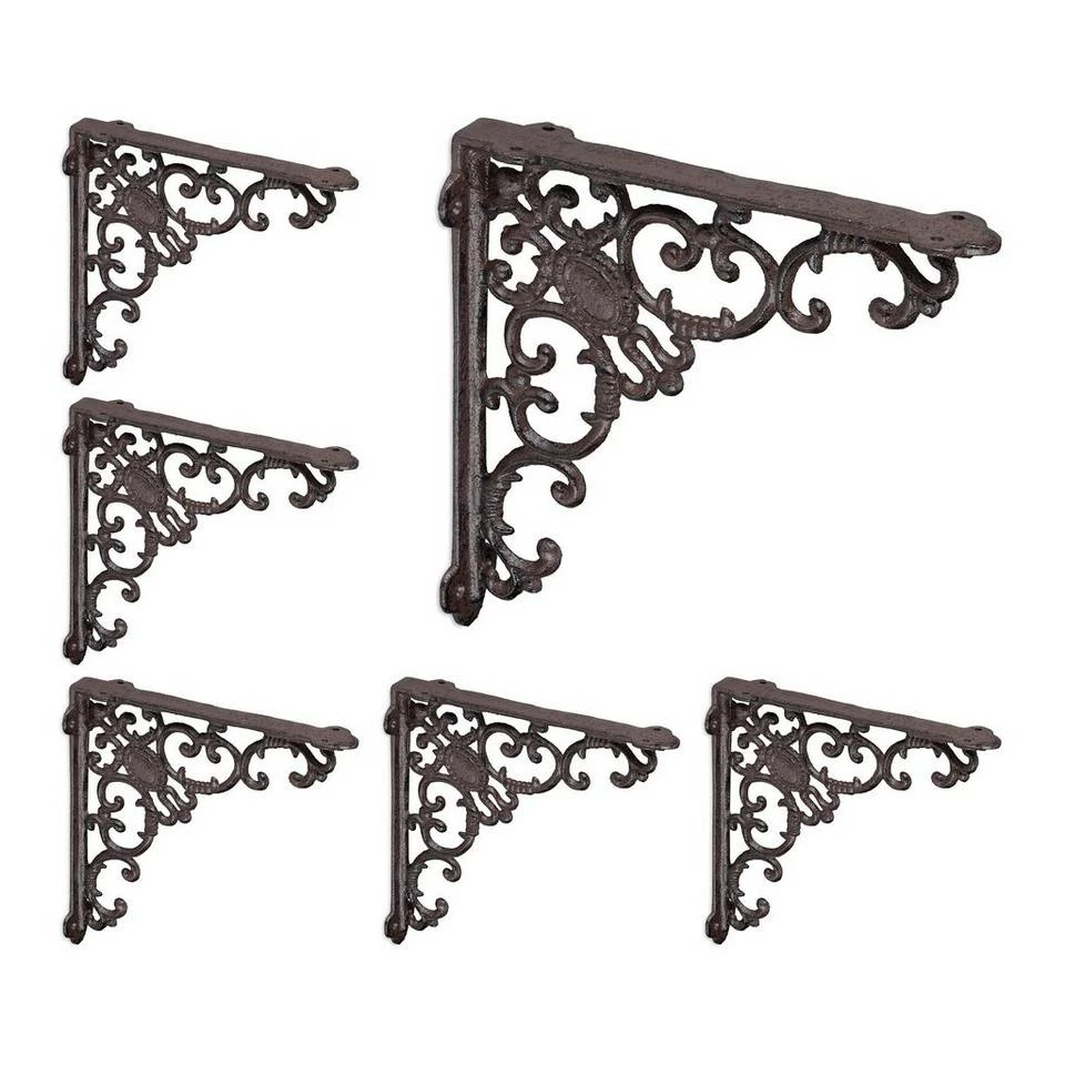 Winkelkonsole für unterschiedliche Regalbretter Die Regal Winkelträger im 6er Set sind praktisch und dekorativ zugleich. Mit einem beliebigen Regalbrett verwandeln Sie die Regalträger in ein einzigartiges und individuelles Wandregal. Gleichzeitig bringen Sie mit der Regalkonsole ganz besonderen Charme in Ihre vier Wände. Setzten Sie antike Akzente im Vintage-Look und nutzen Sie die barocken Ornamente als dekoratives Highlight. Ebenso lassen sich mit den Regalhalterungen auf dem Balkon oder an der Gartenhütte rustikale Akzente setzen.