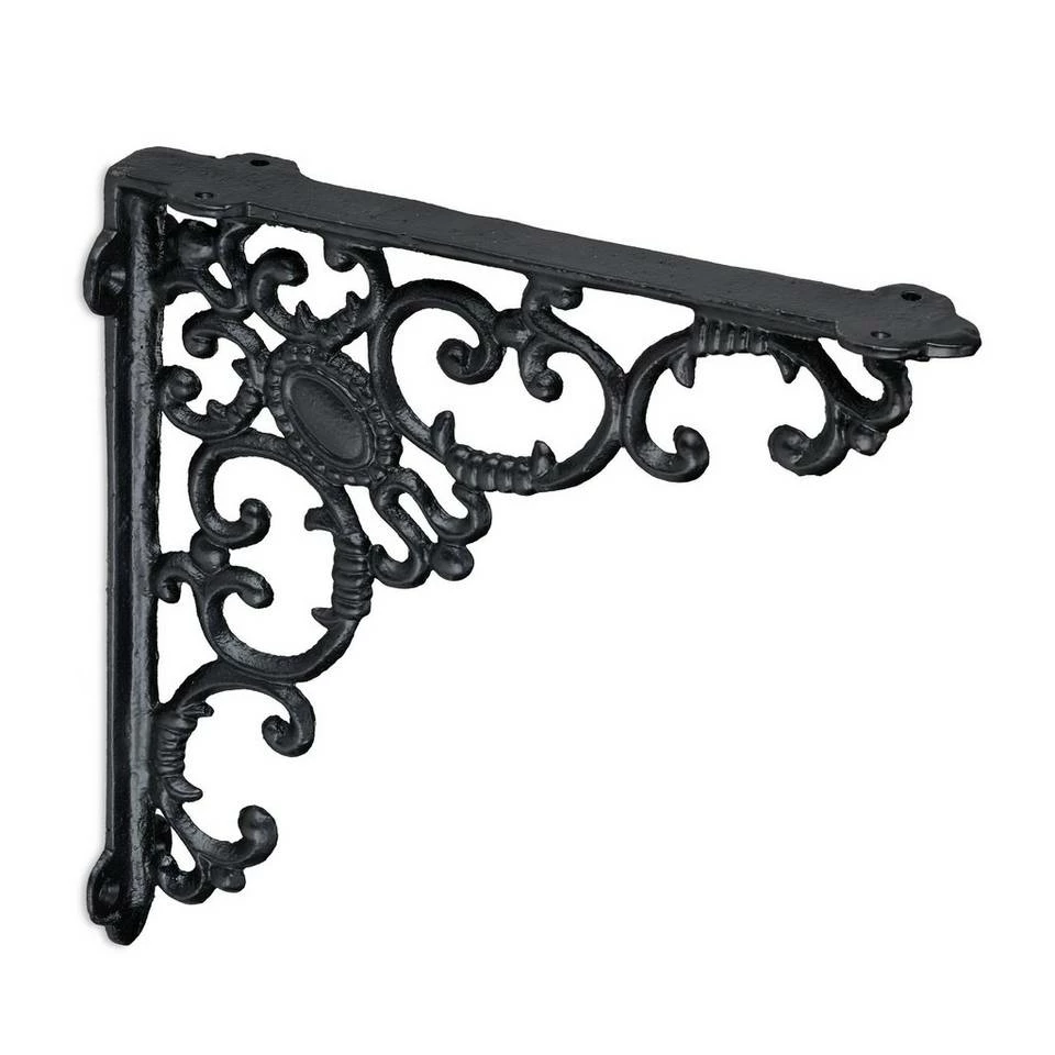 Winkelkonsole für unterschiedliche Regalbretter Die Regal Winkelträger im 6er Set sind praktisch und dekorativ zugleich. Mit einem beliebigen Regalbrett verwandeln Sie die Regalträger in ein einzigartiges und individuelles Wandregal. Gleichzeitig bringen Sie mit der Regalkonsole ganz besonderen Charme in Ihre vier Wände. Setzten Sie antike Akzente im Vintage-Look und nutzen Sie die barocken Ornamente als dekoratives Highlight. Ebenso lassen sich mit den Regalhalterungen auf dem Balkon oder an der Gartenhütte rustikale Akzente setzen.