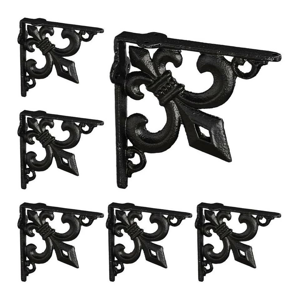 Winkel-Regalträger im antiken Stil Mit diesen Winkelhaltern im 6er Set zaubern Sie aus schlichten Regalbrettern im Handumdrehen dekorative Wandregale mit Vintage Charme, auf denen Sie Bücher und vieles mehr gekonnt in Szene setzen können. Vor allem in nostalgisch angehauchten Einrichtungsstilen fügen sich die Regalhalter perfekt ein und setzen optische Akzente an jeder Wand. Die Regalträger beeindrucken mit Ihrem großen Lilien Ornament im antiken Stil, das durch das robuste Gusseisen besonders gut zur Geltung kommt.