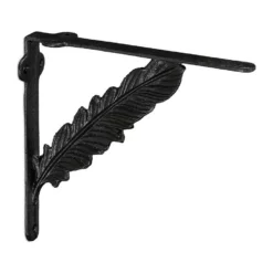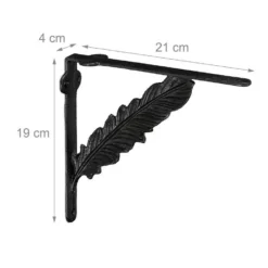 Antike Winkel Wandhalterungen für Regale Um einfachen Wandboards das gewisse Etwas zu verleihen, sind diese Regalträger genau das richtige. Mit ihrem antiken Design hauchen die Winkelträger jedem Regalboden nostalgischen Charme ein und machen ihn zu einem Hingucker an Ihrer Wand. Für einen besonderen Eyecatcher sorgen dabei die verzierten Diagonalstreben, die in Form einer Feder gestaltet sind. Der rustikale Shabby Chic Look der gusseisernen Regalhalterungen fügt sich vor allem in Vintage Einrichtungen im Landhausstil perfekt ein.